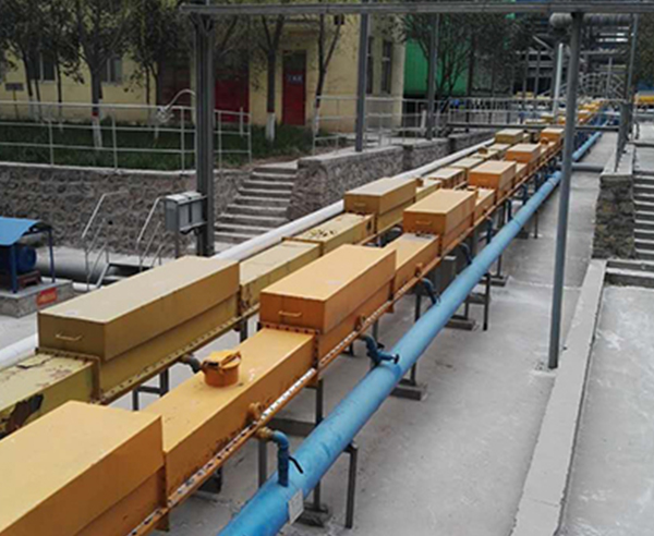 XZ型空氣輸送斜糟(空氣斜槽)適用有于輸送水泥等易流態(tài)化粉狀物料,對(duì)粒度大、水分多、流態(tài)化性能差的物料不宜使用。空氣斜槽以高壓離心風(fēng)機(jī)(9-19:9-26型)為動(dòng)力源,使密閉輸送斜槽中的物料保持流態(tài)化向傾斜向下的一端緩慢的流動(dòng)。本機(jī)主體部分無(wú)傳動(dòng)部件,密封操作管理方便,設(shè)備重量輕,電耗少,送能力大,容易改變輸送方向,采用新型涂淪透氣層等優(yōu)點(diǎn)。