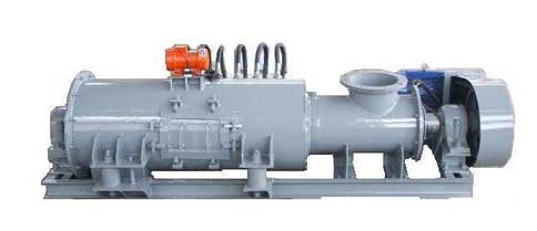 在螺旋葉輪體的勻速運轉時,調(diào)幅振動裝置間歇性的工作,使拌料筒周壁等幅振蕩,將加濕后的粘性粉塵體與金屬筒壁脫離,完全送如卸料口排出。